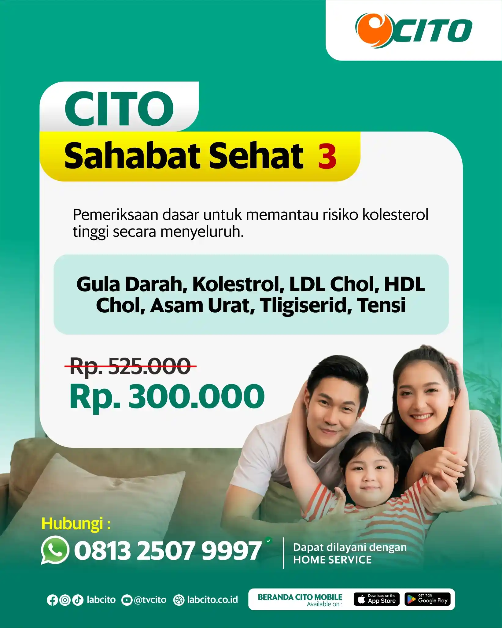 Dalam menjalankan langkah-langkah ini, penting untuk tetap berkomitmen dan berkonsultasi dengan dokter dalam perencanaan kesehatan yang anda lakukan. Perubahan gaya hidup, akan membantu menurunkan kolesterol aman, dan efektif, serta meningkatkan kesehatan secara keseluruhan. Sekarang anda bisa berkonsultasi secara online menggunakan layanan Ready Dokter CITO, yuk konsultasikan kesehatanmu segera untuk bisa mendapatkan penanganan yang tepat. #CITOInnovationForHappiness