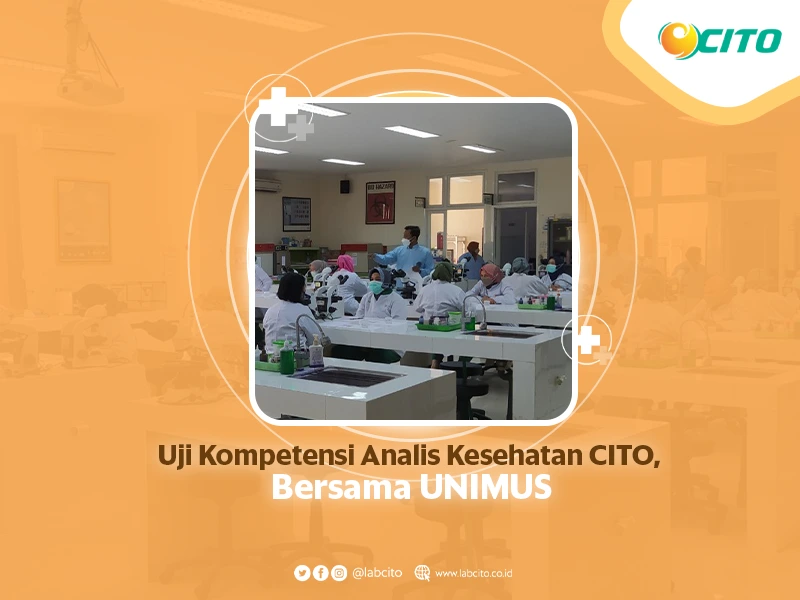 Semarang 27-28 Agustus 2022, CITO melaksanakan uji kompetensi analis kesehatan (ATLM) untuk menambah dan meningkatkan kualitas skill dalam menganalisis suatu hasil pemeriksaan. Uji kompetensi ini dilaksanakan di Universitas Muhammadiyah Semarang (UNIMUS) untuk mendapatkan penilaian yang obyektif untuk para analis kesehatan. Dalam pelaksanaannya, CITO merujuk pada penilaian kompetensi para analis untuk mendapatkan hasil evaluasi yang dapat dijadikan benchmarking.