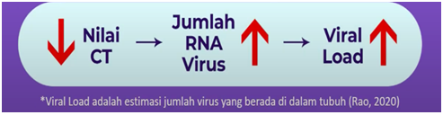 Nilai Ct berbanding terbalik dengan jumlah RNA virus penyebab Covid 19 yang diperiksa atau dengan estimasi viral load